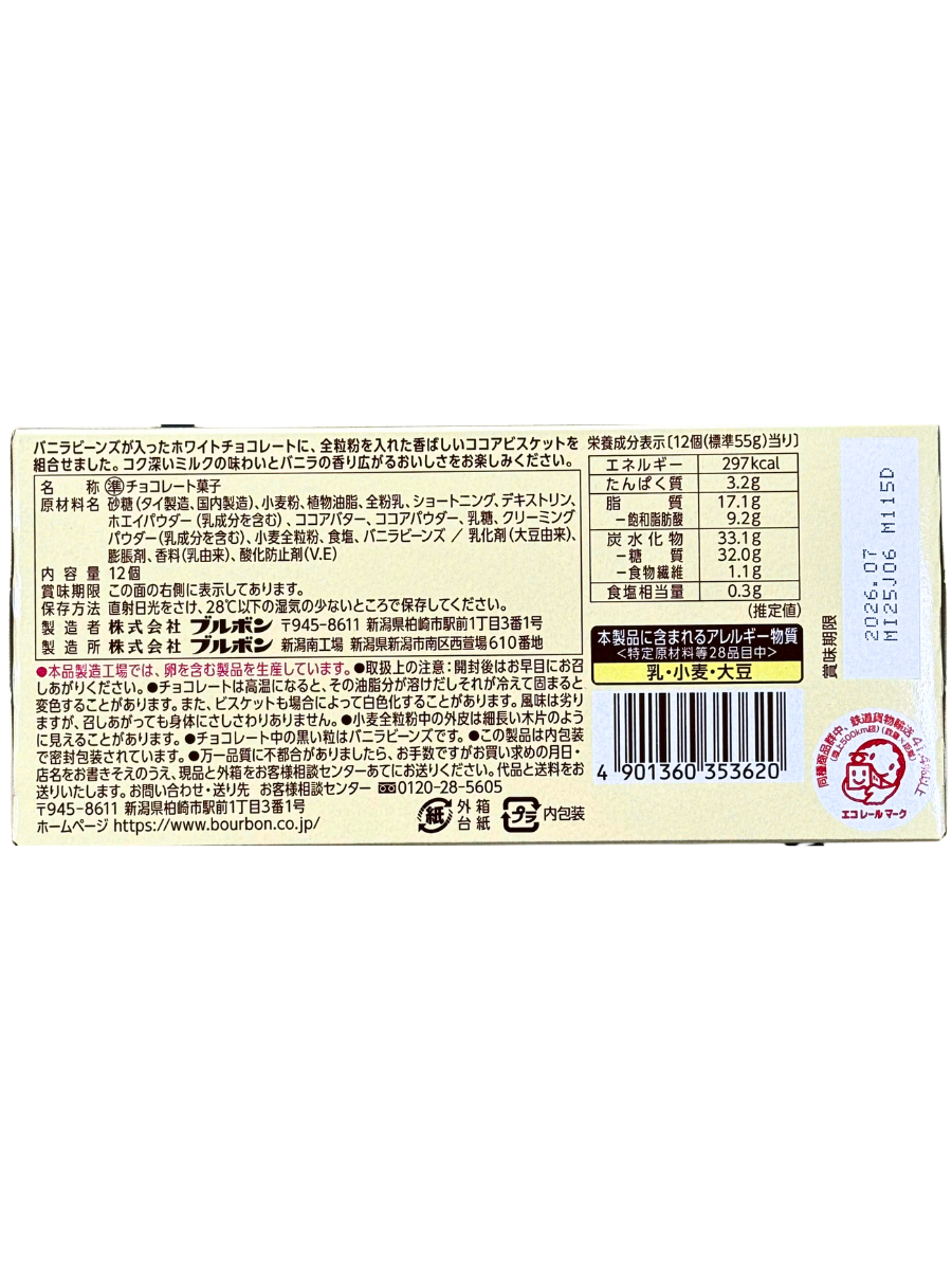 Bánh Quy Nhật Alfort Bourbon Mini vị Trắng Vani là sự hòa quyện giữa socola trắng ngọt thanh và bánh quy cacao giòn tan.