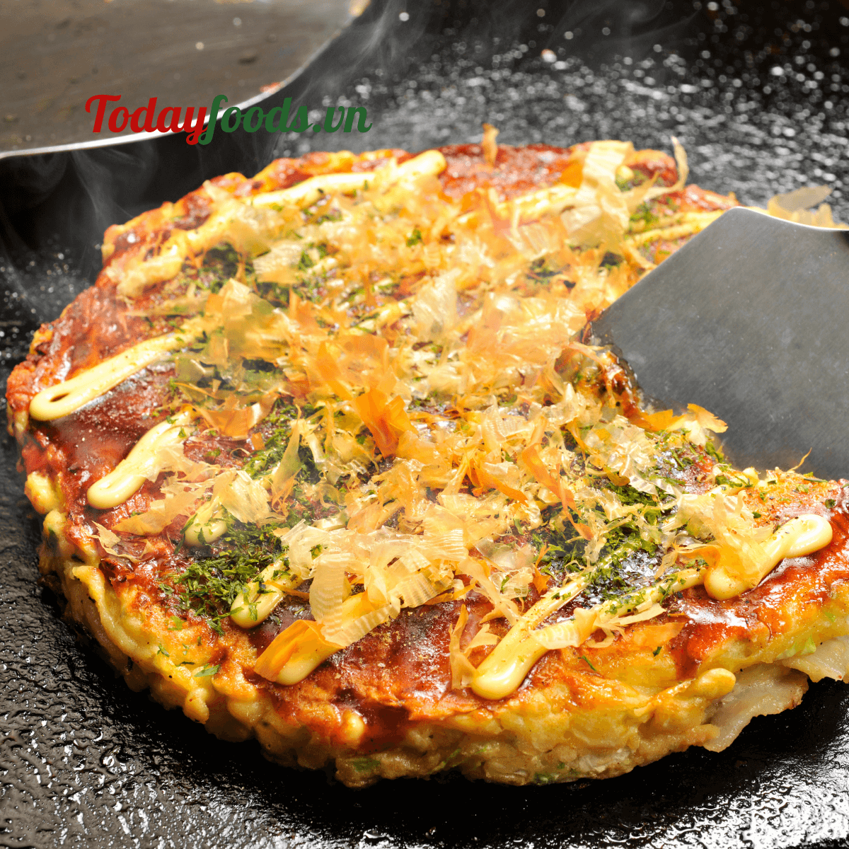 Bánh xèo Nhật Bản okonomiyaki thơm ngon được chế biến từ bột làm bánh takoyaki okomiyaki tiện dụng