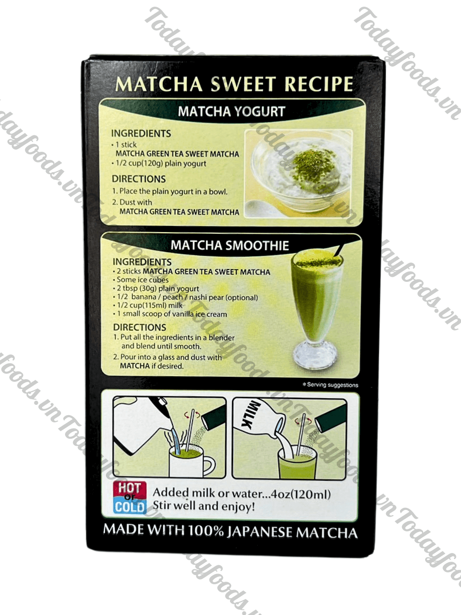 Bột matcha với chất bột siêu mịn, có màu xanh ngọc tươi sáng được cho thêm đường. Mang đến sản phẩm bột trà xanh matcha Itoen rất hợp để pha chế đồ uống nóng/lạnh, làm matcha sữa chua hay matcha smoothie đều rất ngon và tiện lợi.
