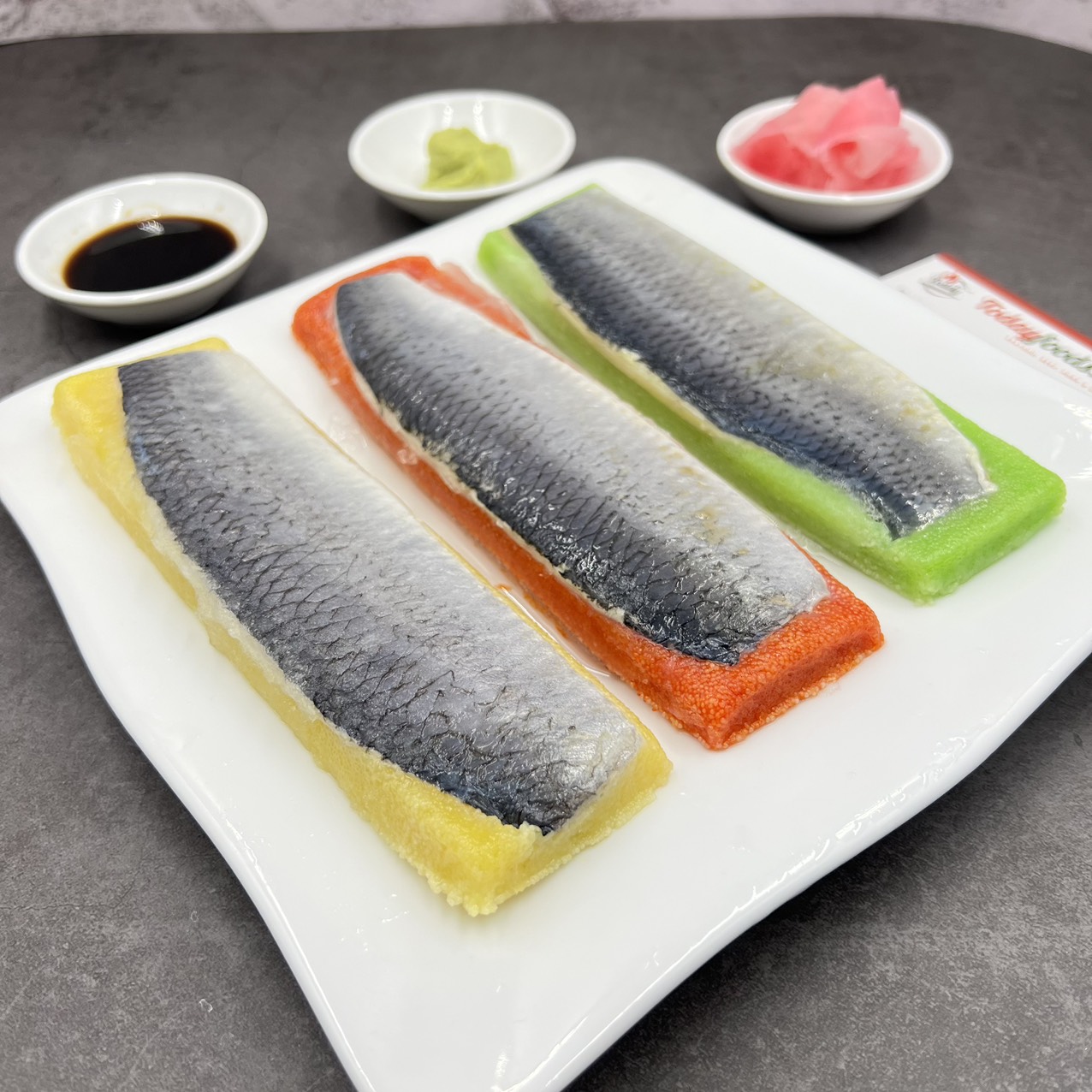 Hiện tại, cá trích ép trứng Nhật Bản đang có 3 màu khác nhau cho bạn lựa chọn: Vàng (vị tự nhiên), Đỏ (vị gừng hồng) và Xanh (vị mù tạt). Tùy theo khẩu vị mà bạn hãy chọn ra thanh cá trích ép trứng mà mình yêu thích nhất nhé!