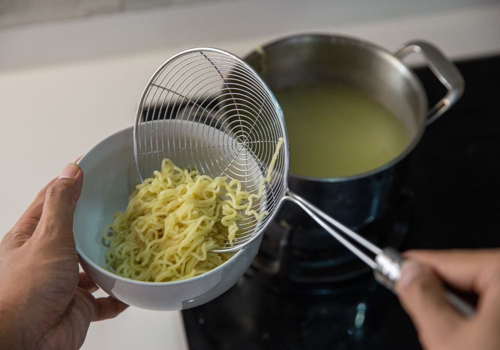 - Nấu mì Ramen: Nấu mì Ramen theo hướng dẫn trên bao bì. Khi mì đã chín, đặt mì vào bát.