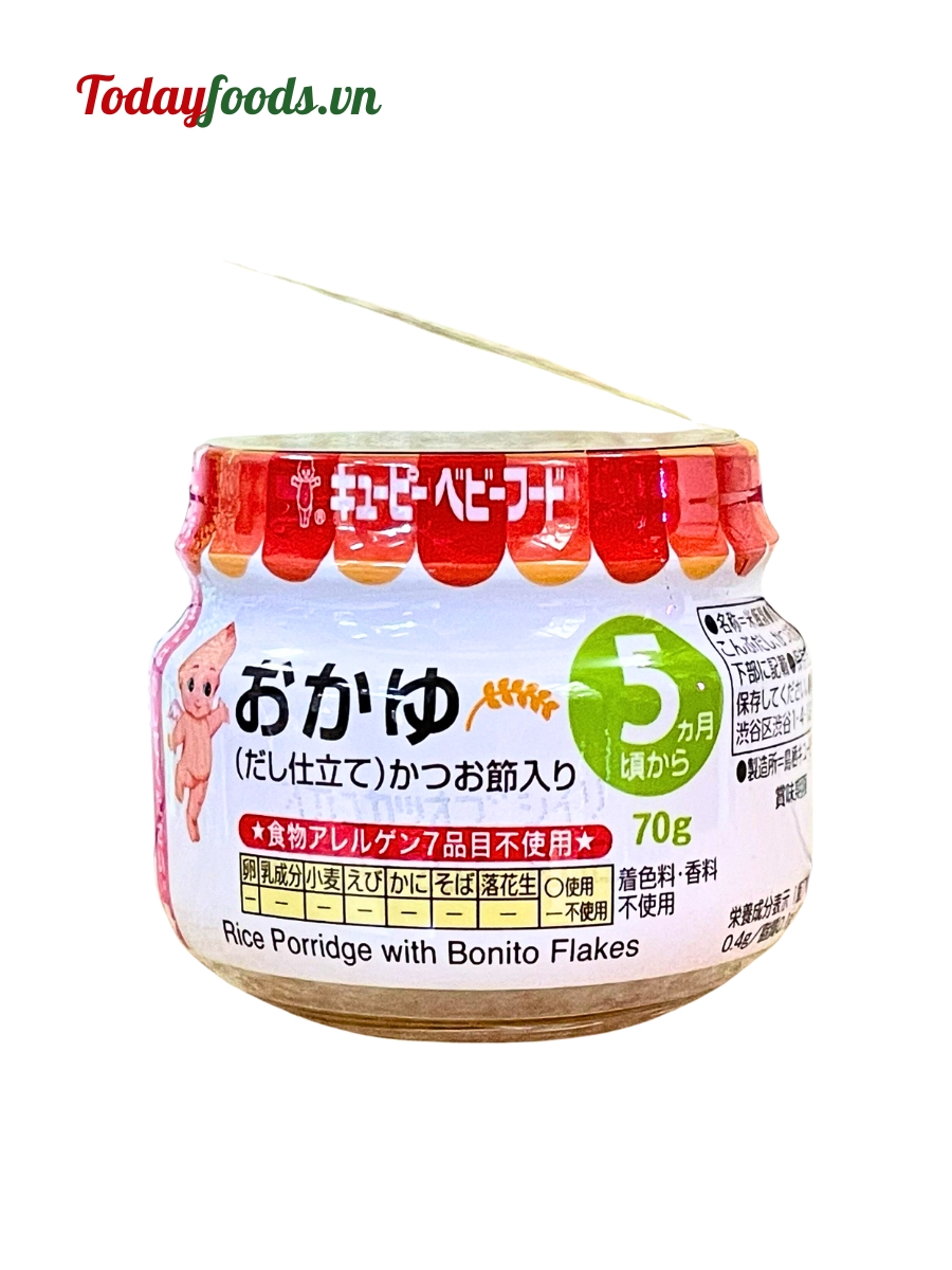 Sản phẩm cháo trắng nấu với nước dùng cá bào Kewpie mang vị ngon ngọt tự nhiên, cháo được nấu nhuyễn mịn cùng nước dùng dashi, giúp kích thích bé ăn ngon miệng, đặc biệt trong giai đoạn bắt đầu tập làm quen với ăn dặm.