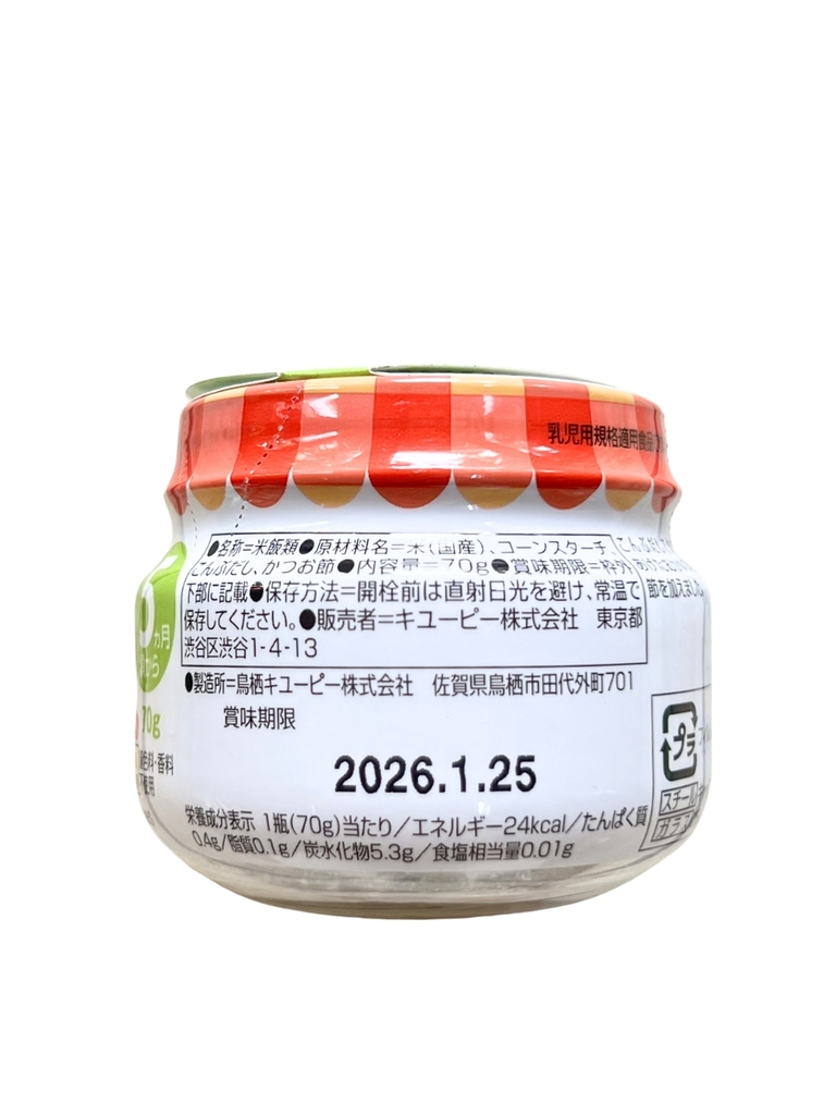 Sản phẩm cháo trắng nấu với nước dùng Kewpie dành cho trẻ ăn dặm từ 5 tháng tuổi. Khuấy đều sản phẩm, lấy một lượng vừa đủ ra chén và cho bé ăn.