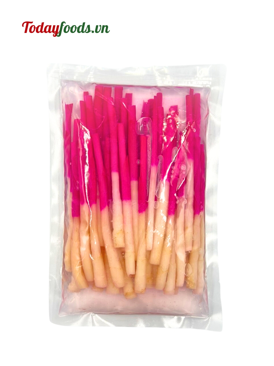 Làm từ gừng tươi, có vị cay, chua và ngọt, xen lẫn 2 màu trắng và đỏ hồng cực kỳ nổi bật để trang trí món ăn.