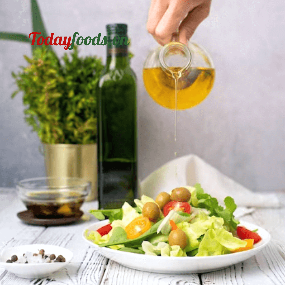 Rưới trực tiếp dầu oliu extra virgin lên salad để tăng hương vị món ăn