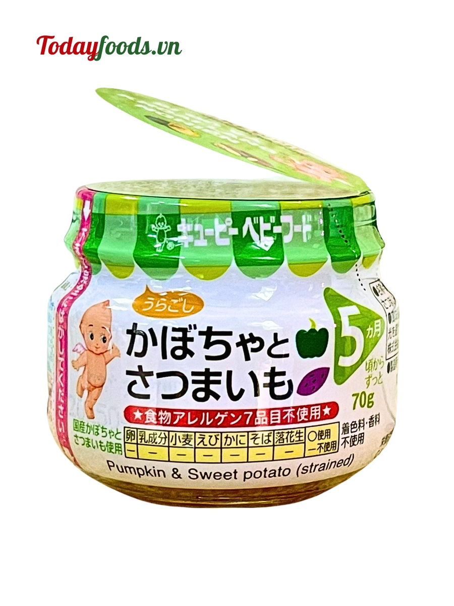 Sản phẩm bí đỏ và khoai lang nghiền Kewpie với vị ngọt dịu, được nghiền mịn, đóng trong lọ, có thể ăn luôn hoặc hâm nóng để bé ngon miệng, rất tiện cho bố mẹ mang theo khi đi du lịch hoặc đi xa.
