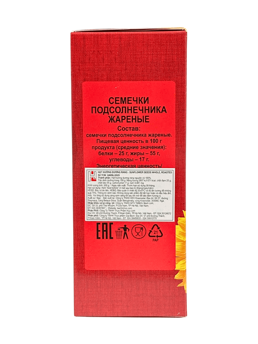 Thành phần: Hạt hướng dương rang (семечки подсолнечника жареные).
