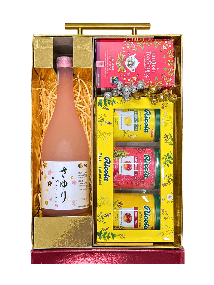 Hộp Quà Tết Phú Quý 03 là sự kết hợp hài hòa giữa rượu sake Nhật Bản cao cấp, trà hữu cơ và kẹo thảo mộc nhập khẩu, mang đến trải nghiệm tinh tế, sang trọng và đầy ý nghĩa trong những ngày xuân sum vầy.
