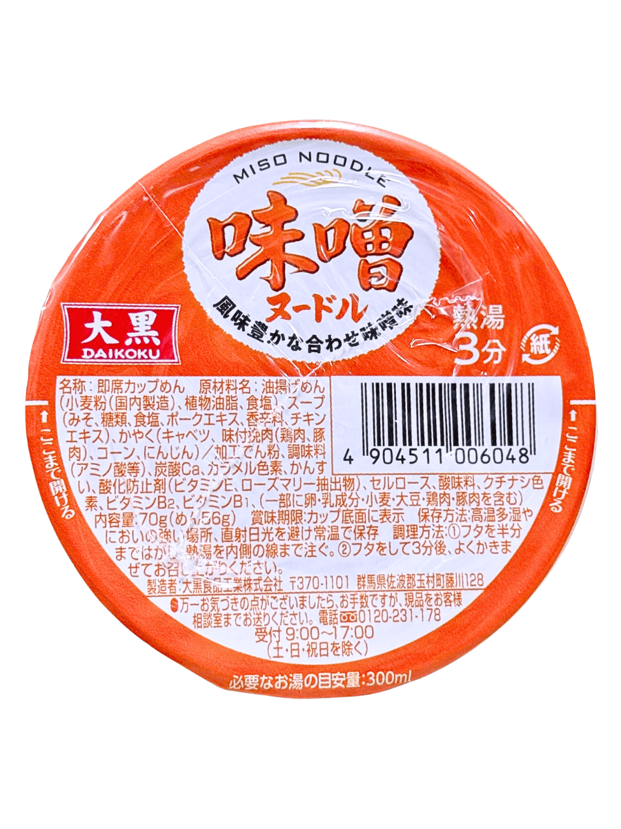 - Mì: bột mì (sản xuất trong nước Nhật), dầu thực vật, muối.