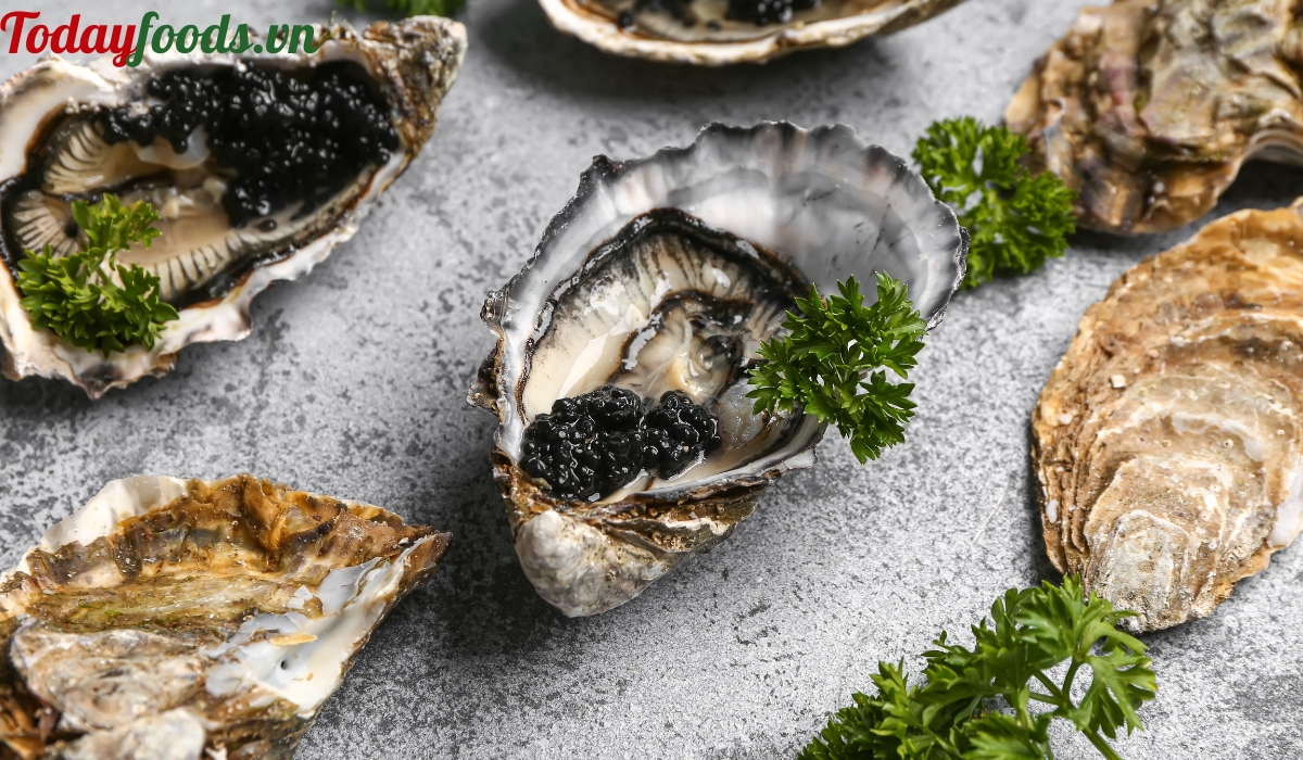 Hàu là một loại hải sản giàu dinh dưỡng và có hương vị đặc biệt. Hàu có thể ăn sống hoặc nướng, nhưng nếu bạn muốn kết hợp với trứng cá tầm, bạn nên ăn sống để giữ được vị nguyên bản của hàu. Bạn có thể lấy một con hàu, mở vỏ, rưới một ít nước chanh hoặc giấm, rồi đặt một lượng nhỏ trứng cá tầm lên trên. Bạn sẽ cảm nhận được sự hòa quyện giữa vị ngọt của hàu, vị mặn của trứng cá tầm và vị chua của nước chanh hoặc giấm.