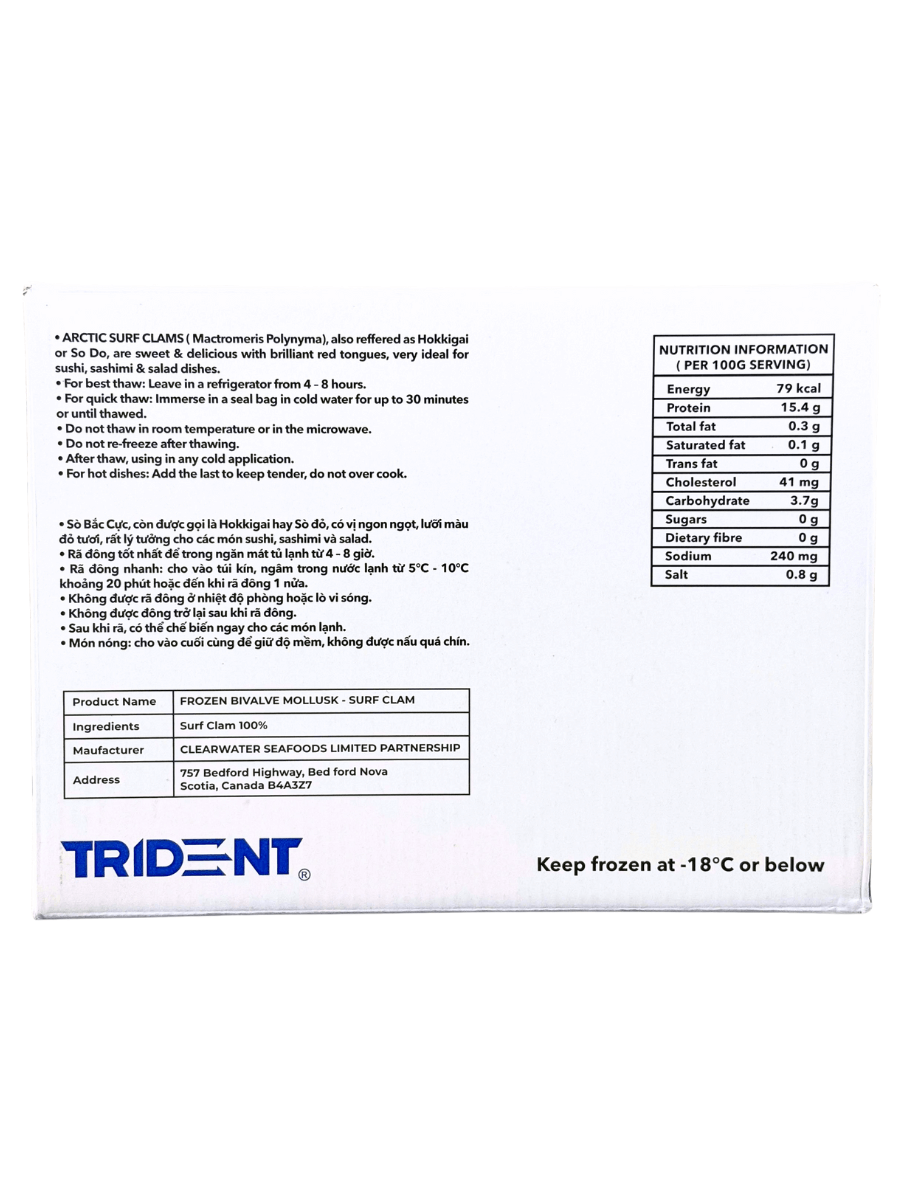 Thành phần: 100% sò đỏ (Hokkigai – Arctic Surf Clam).