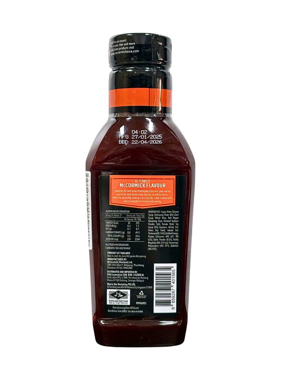 McCormick là thương hiệu gia vị nổi tiếng của Mỹ với hơn 130 năm lịch sử, hiện diện tại hơn 150 quốc gia. Sản phẩm Spicy Korean Sauce được sản xuất tại Thái Lan để phù hợp thị trường châu Á nhưng vẫn đảm bảo tiêu chuẩn quốc tế. Đây là lựa chọn tin cậy cho những ai yêu thích hương vị Hàn chuẩn xác.