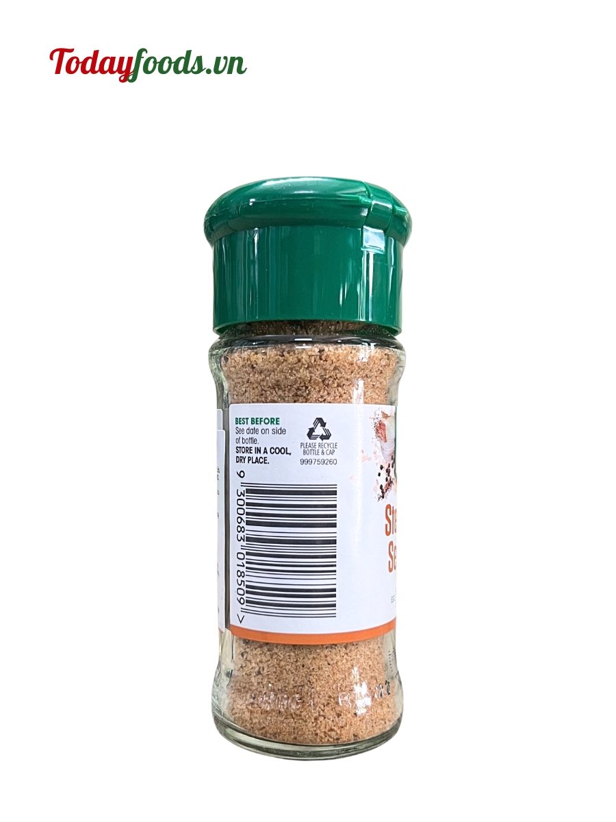 Gia vị tẩm ướp bò nướng của McCormick được pha chế từ những nguyên liệu tinh túy như muối, bột gạo, hành tây, hạt tiêu, ớt Paprika, tỏi, hạt cần tây, dầu đậu nành, và các hương liệu khác. Sản phẩm này mang đến hương vị đặc trưng và độc đáo cho món thịt bò nướng, làm nổi bật khẩu vị đích thực của thực phẩm.