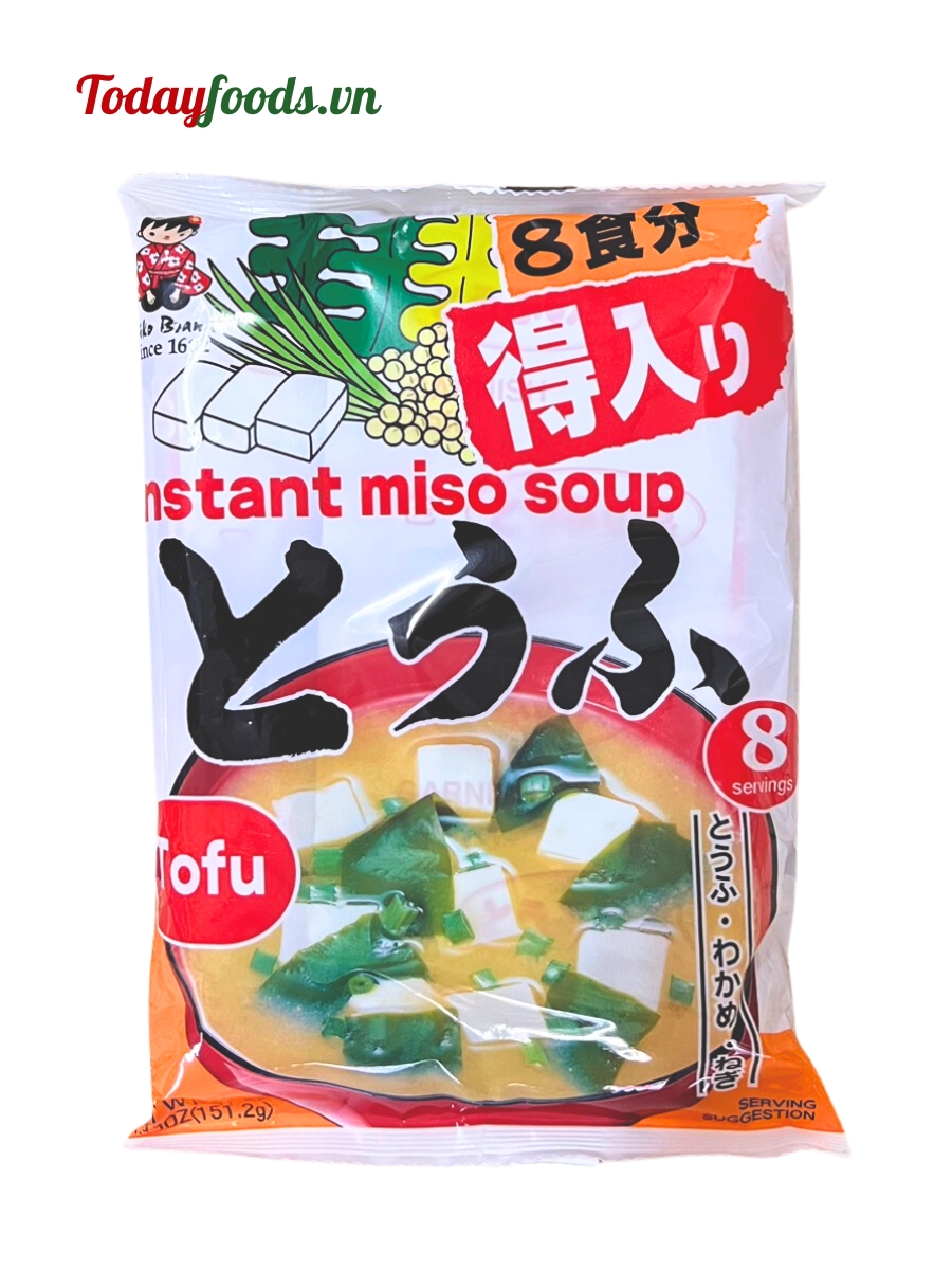 - Gói gia vị: Đậu phụ sấy khô, rong biển wakame sấy khô, hành lá sấy khô, gia vị bột cá ngừ.