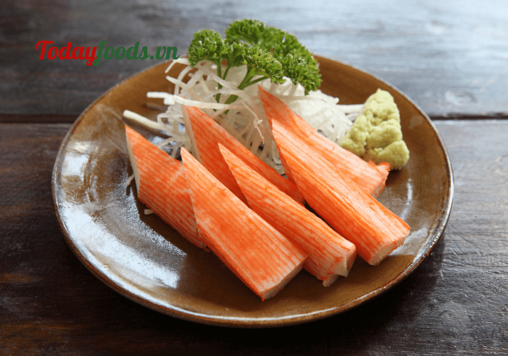 - Thành phần: Thịt cá, nước, tinh bột khoai mì biến tính, lòng trắng trứng, muối, đường, protein đậu nành, gia vị làm ngọt, chiết xuất nấm men, hương vị cua tổng hợp, trứng, màu tự nhiên, chất nhũ hóa,...