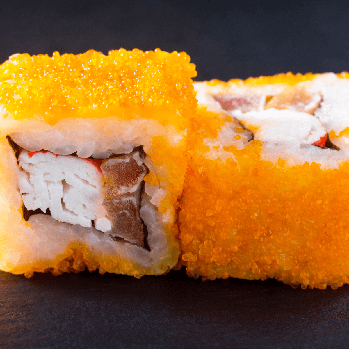 Trứng cá chuồn vàng thường được sử dụng để trang trí cho các món sashimi và sushi, bao gồm các loại sushi cuộn như: uramaki sushi, maki sushi... Không chỉ mang đến hương vị thơm ngon mà trứng cá chuồn vàng còn có độ giòn và màu sắc tươi sáng, làm cho món ăn trông thêm hấp dẫn.