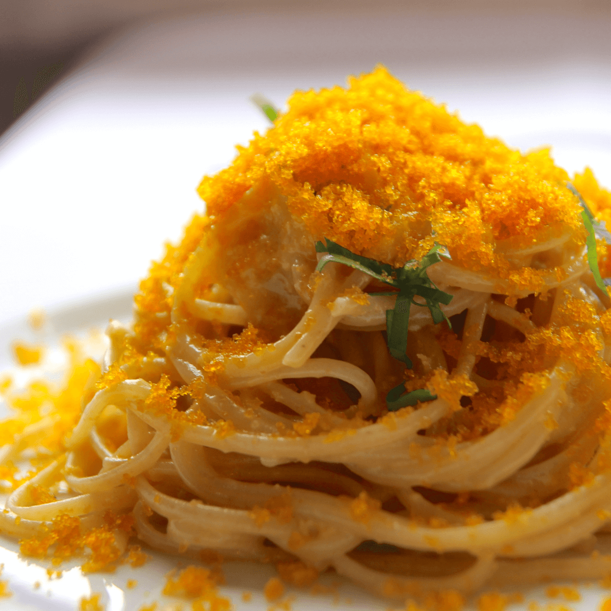 Trứng cá chuồn vàng còn rất phù hợp để sử dụng làm nguyên liệu cho món mỳ spaghetti. Trứng cá chuồn vàng óng ánh giòn giòn sựt sựt khi kết hợp cùng mỳ spaghetti béo ngậy sẽ tạo nên nét thú vị cho món ăn này. Đồng thời cũng làm cho món mì spaghetti trở nên hấp dẫn và bắt mắt hơn rất nhiều với việc trang trí bằng trứng cá chuồn tobiko vàng.
