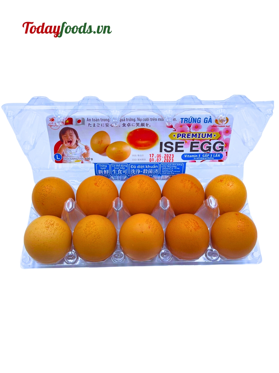 Trứng gà Ise hay trứng gà Nhật Bản có vitamin E cao gấp 3 lần quả trứng bình thường, trứng đã qua quy trình khử khuẩn đảm bảo chất lượng cao và sử dụng an toàn tuyệt đối, trứng có thể ăn sống hoặc chế biến nhiều món ngon hấp dẫn khác.